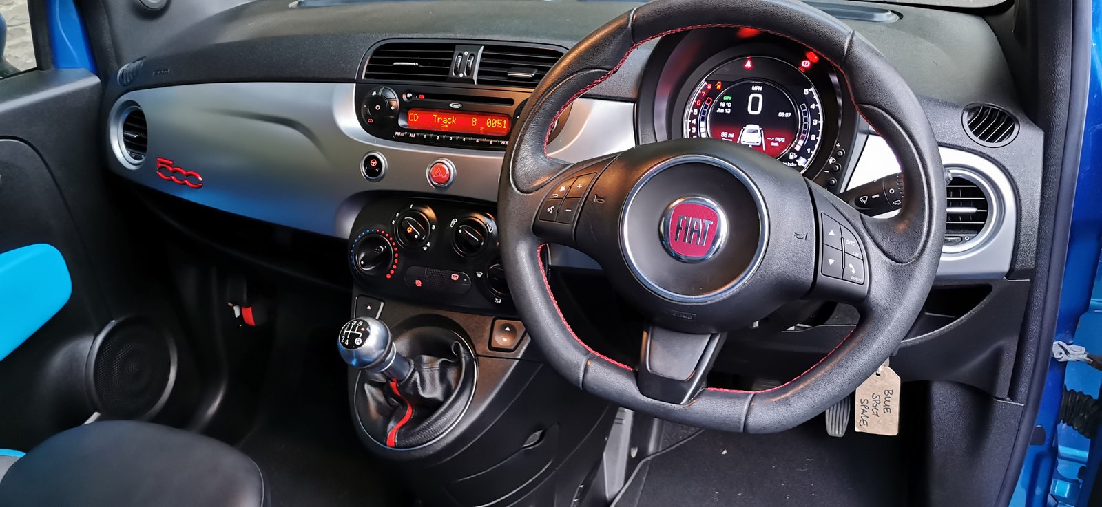 2014 – FIAT 500 S 1.2 *** VERY LOW MILEAGE EXAMPLE 39,000 miles *** in metallic blue, 3-dr, petrol, 5 speed manual, stop start, black & blue trim, sports body kit, Cd player, bluetooth, steering wheel audio controls, elec windows, remote central locking, Abs brakes, service history, owners book and two keys, this car is in excellent condition inside and out for its age…..