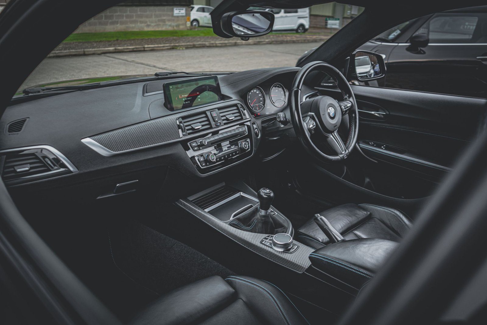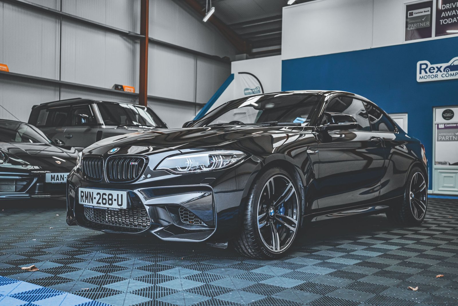 This rare manual M2 Coupe comes fully equipped with a fantastic spec, including; Full Leather Interior, Electric Heated Front Seats, Memory Drivers Seat, Harmon Kardon Sound System, Multifunction Steering Wheel, Cruise Control, Auto Lights & Wipers, Navigation, Air Conditioning, Rear Parking Camera, Rear Parking Sensors, Bluetooth Connectivity, DAB, Driver Mode Selection, Keyless Start, Quad Exhaust Tailpipes plus much much more, finished in Black Sapphire Metallic with 19" Two-Tone Alloy Wheels