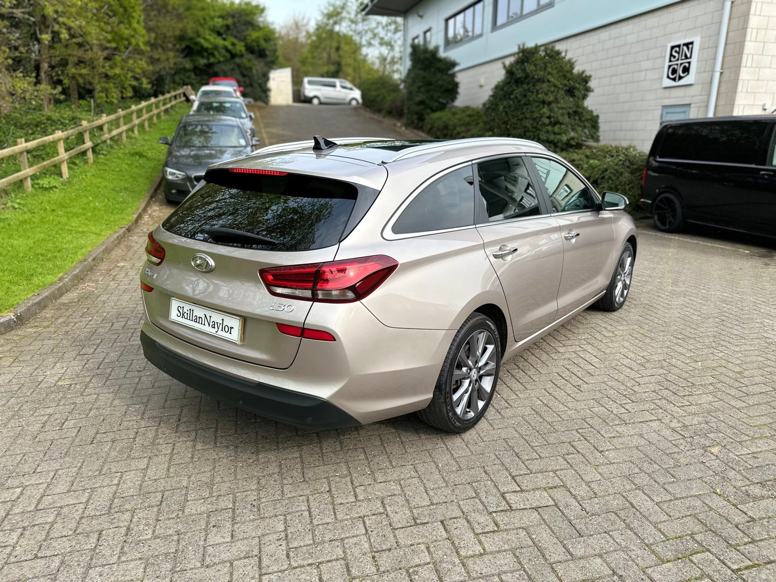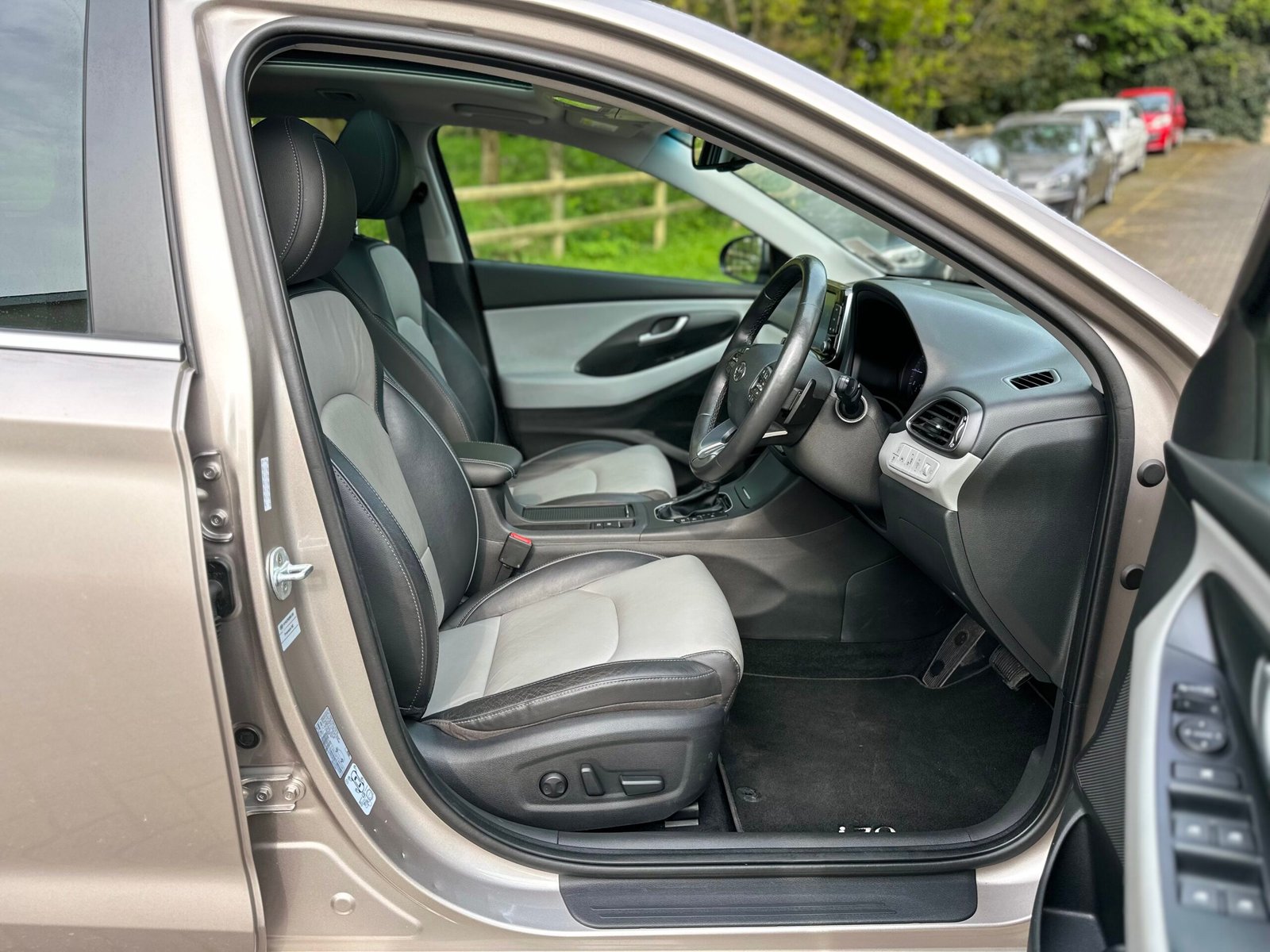 SkillanNaylor Car Company are pleased to offer this 2018 Hyundai i30 Tourer 1.4T GDI Premium SE 5Dr DCT Auto seen in Champagne Grey Metallic with Black/Ivory Leather upholstery.