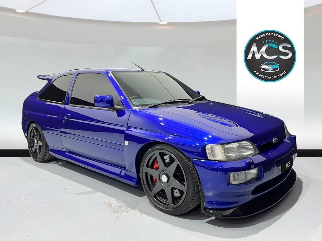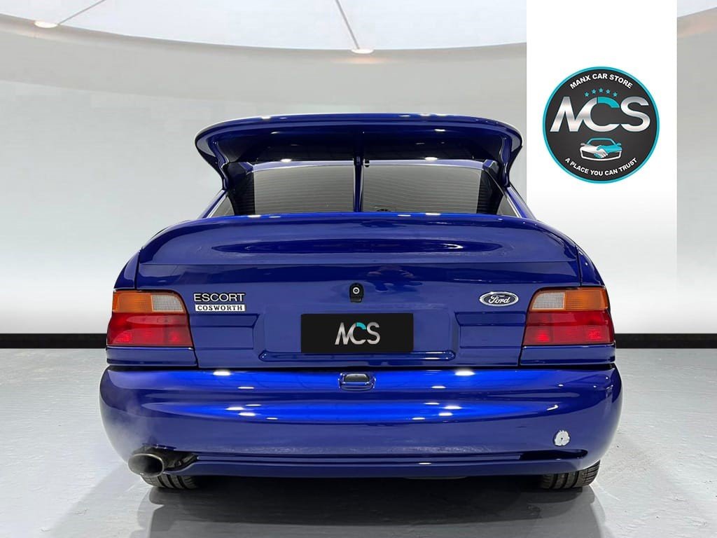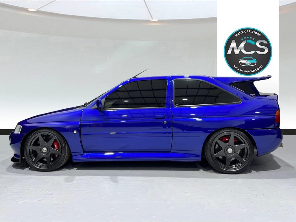 Ford Escort RS Cosworth – The Greatest Ford Escort of All Ford Escort RS Cosworth Lux Model 4X4 2 owners finished in Imperial Blue. Fully maintained by Noris Motorsport in the UK. A True Fast Ford Unicorn it is simply the highest specification and most technologically advanced of all the Cosworth Rally Cars. It is the combination of distinctive styling with true rally bred innovation which gives this Escort Cosworth its special flair. From the front contoured air dam, body coloured bumper and louvred hood top air intakes to the body colour rocker moulding front fenders with air extraction grilles and Rondell alloy wheels, this is unmistakeably a car built to perform. The reality of this car can only be discovered from the driving seat. It offers the comfort and space not usually found in a performance car. Once seated you’ll find all the features and equipment you need in a car designed to be driven. The tough world of rallying is a convincing proving ground for this 2.0 DOHC 16v turbocharged Cosworth Engine, it guarantees breath-taking performance with sparkling immediate engine response. Few cars look this good. Fewer still offer such rewards on the open road. Visit Manx Car Store today to take a closer look at this vehicle and take it for a test drive. Don't miss out on this great opportunity – call us now on 01624821930, Or send us a Whatsapp Message on 07624 347688.