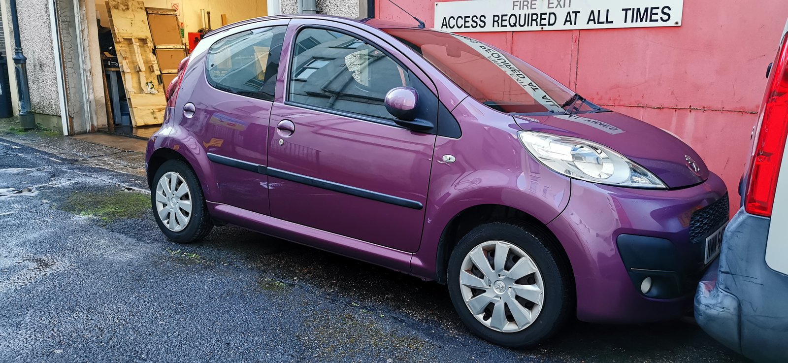 2013 – PEUGEOT 107 1.0 ACTIVE *** VERY LOW MILEAGE EXAMPLE 40,000 miles *** in met purple, 5-dr, petrol, 5 speed manual, black cloth trim, Cd player, elec windows, remote central locking, Abs brakes, service history, owners book and two keys, this car is in excellent condition inside and out for its age…..