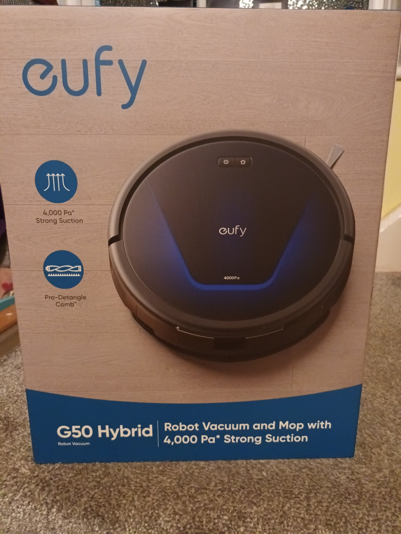 Eufy offers a range of robot vacuum cleaners designed to automate and simplify home cleaning. Here are some notable models currently available: Eufy X10 Pro Omni This high-end model features 8,000Pa suction power and twin rotating mop heads applying 1kg of downward pressure for thorough cleaning. It uses front-facing camera and laser technology for obstacle detection and efficient navigation. The base station handles self-emptying, self-cleaning, and mop drying, minimizing manual intervention. 4 **Eufy X10 Pro Omni** This high-end model features 8,000Pa suction power and twin rotating mop heads applying 1kg of downward pressure for thorough cleaning. It uses front-facing camera and laser technology for obstacle detection and efficient navigation. The base station handles self-emptying, self-cleaning, and mop drying, minimizing manual intervention. 15Eufy 11S Max A budget-friendly option with a slim design and powerful motor, offering up to 100 minutes of runtime. It features four cleaning modes and automatic suction adjustment for efficient cleaning on various floor types. This model has received positive reviews for its effectiveness in removing pet hair and daily debris. 16 **Eufy 11S Max** A budget-friendly option with a slim design and powerful motor, offering up to 100 minutes of runtime. It features four cleaning modes and automatic suction adjustment for efficient cleaning on various floor types. This model has received positive reviews for its effectiveness in removing pet hair and daily debris. 27Eufy 3-in-1 E20 This versatile vacuum transforms from an autonomous robot to a manual stick or handheld vacuum. In robot mode, it offers 8,000Pa suction power and up to 180 minutes of runtime. The compact dock charges and empties the dust bin, accommodating up to 75 days of cleaning. As a stick or handheld vacuum, it provides enhanced suction power for targeted cleaning tasks. 28 **Eufy 3-in-1 E20** This versatile vacuum transforms from an autonomous robot to a manual stick or handheld vacuum. In robot mode, it offers 8,000Pa suction power and up to 180 minutes of runtime. The compact dock charges and empties the dust bin, accommodating up to 75 days of cleaning. As a stick or handheld vacuum, it provides enhanced suction power for targeted cleaning tasks. 42These models cater to various cleaning needs and budgets, offering features from basic vacuuming to advanced mopping and self-maintenance capabilities. box not opened