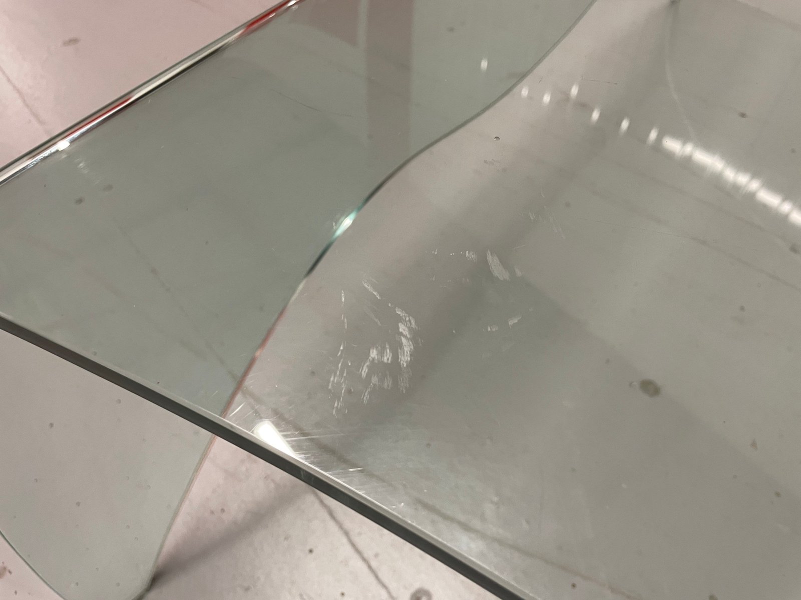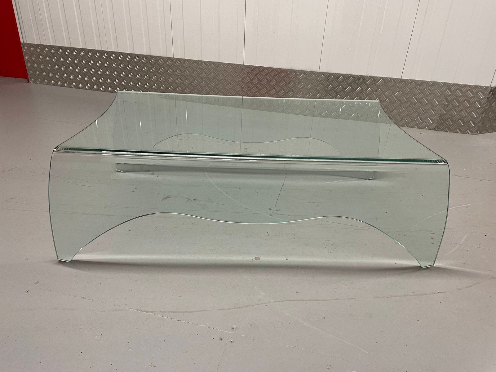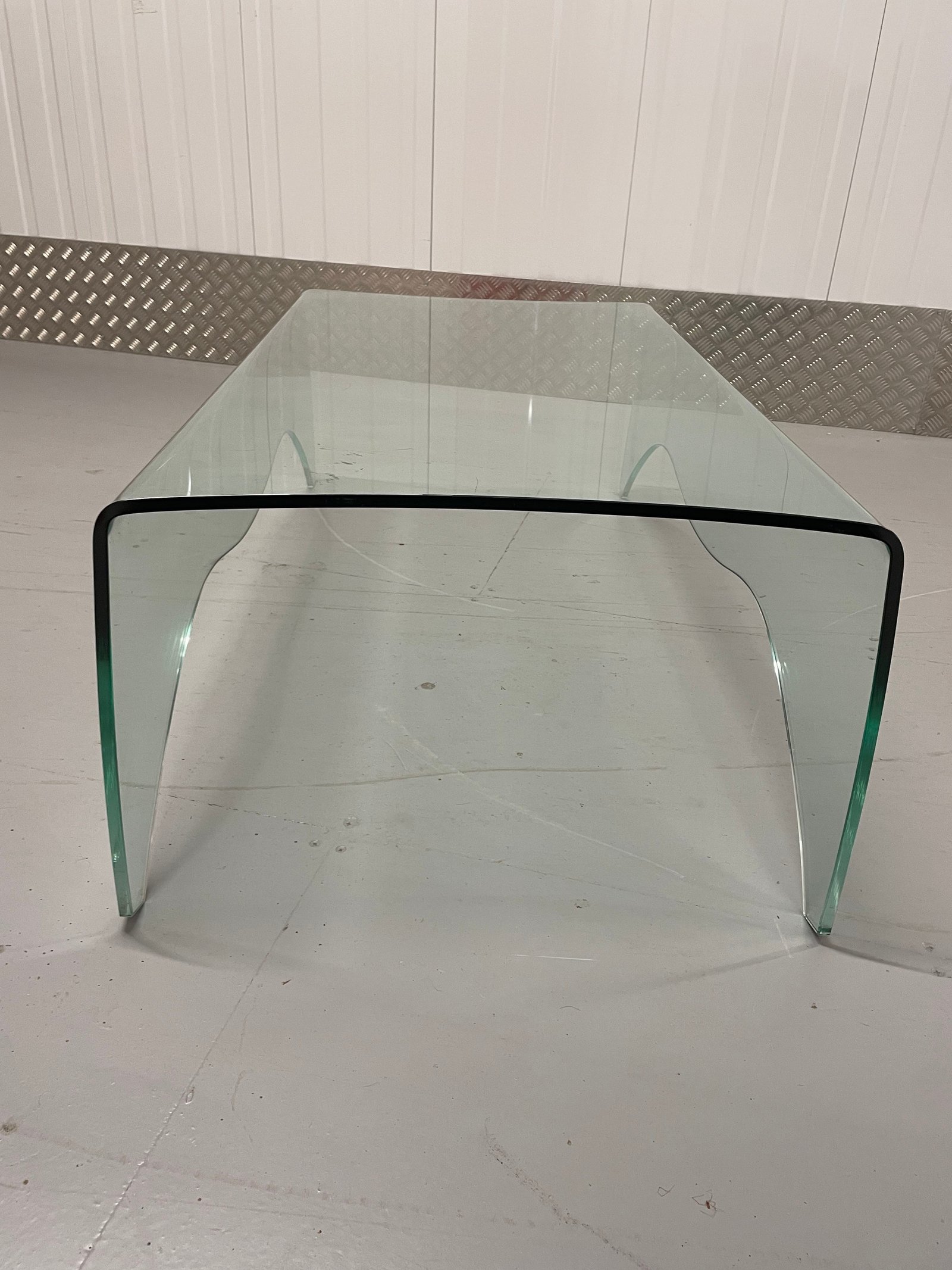 12mm thick stylish, curved glass coffee table